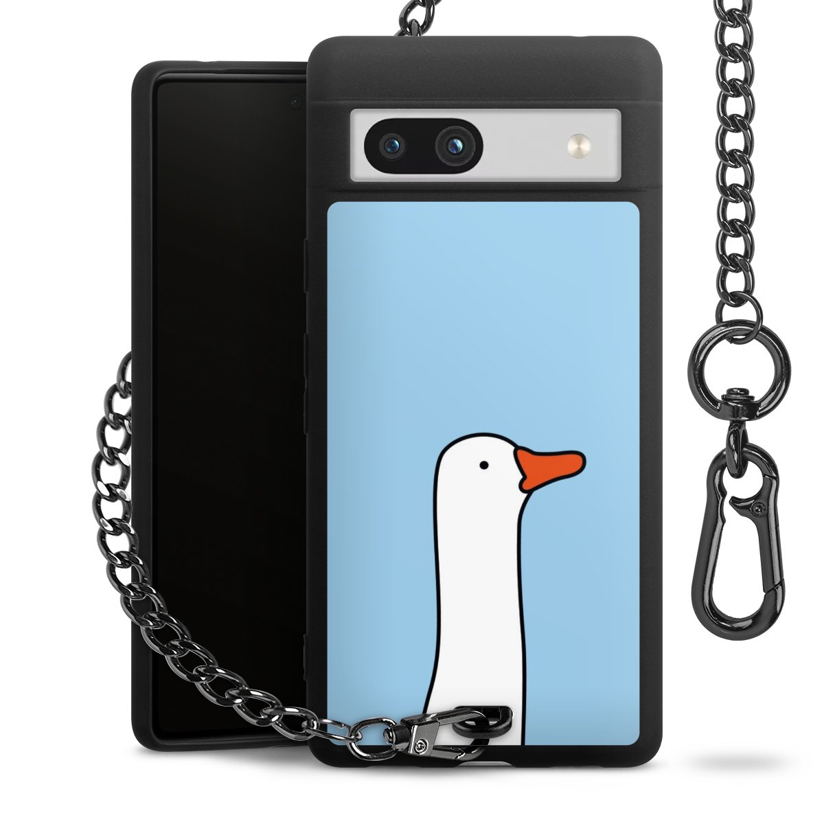 Die mattschwarze Silikon-Handyhülle besteht aus robustem TPU (thermoplastisches Polyurethan). Sie ist flexibel und schützt Dein Smartphone vor Stößen und Kratzern. Die Kette sowie der Karabinerhaken sind aus Metall in Gunmetal-Optik gefertigt. Für dieses Produkt kommen ausschließlich TÜV-geprüfte Materialien zum Einsatz.