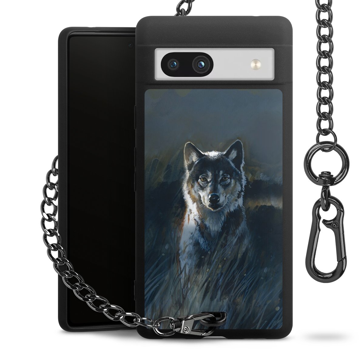 Die mattschwarze Silikon-Handyhülle besteht aus robustem TPU (thermoplastisches Polyurethan). Sie ist flexibel und schützt Dein Smartphone vor Stößen und Kratzern. Die Kette sowie der Karabinerhaken sind aus Metall in Gunmetal-Optik gefertigt. Für dieses Produkt kommen ausschließlich TÜV-geprüfte Materialien zum Einsatz.