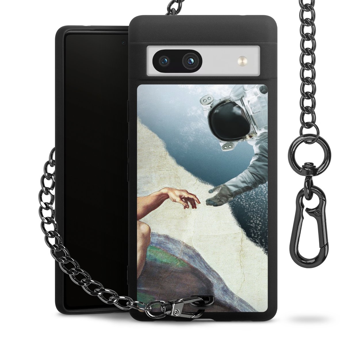 - Mattschwarze Handyhülle mit Metallkette