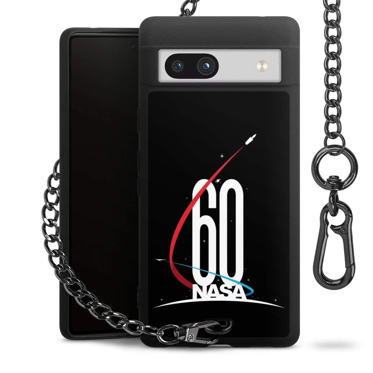 Die mattschwarze Silikon-Handyhülle besteht aus robustem TPU (thermoplastisches Polyurethan). Sie ist flexibel und schützt Dein Smartphone vor Stößen und Kratzern. Die Kette sowie der Karabinerhaken sind aus Metall in Gunmetal-Optik gefertigt. Für dieses Produkt kommen ausschließlich TÜV-geprüfte Materialien zum Einsatz.