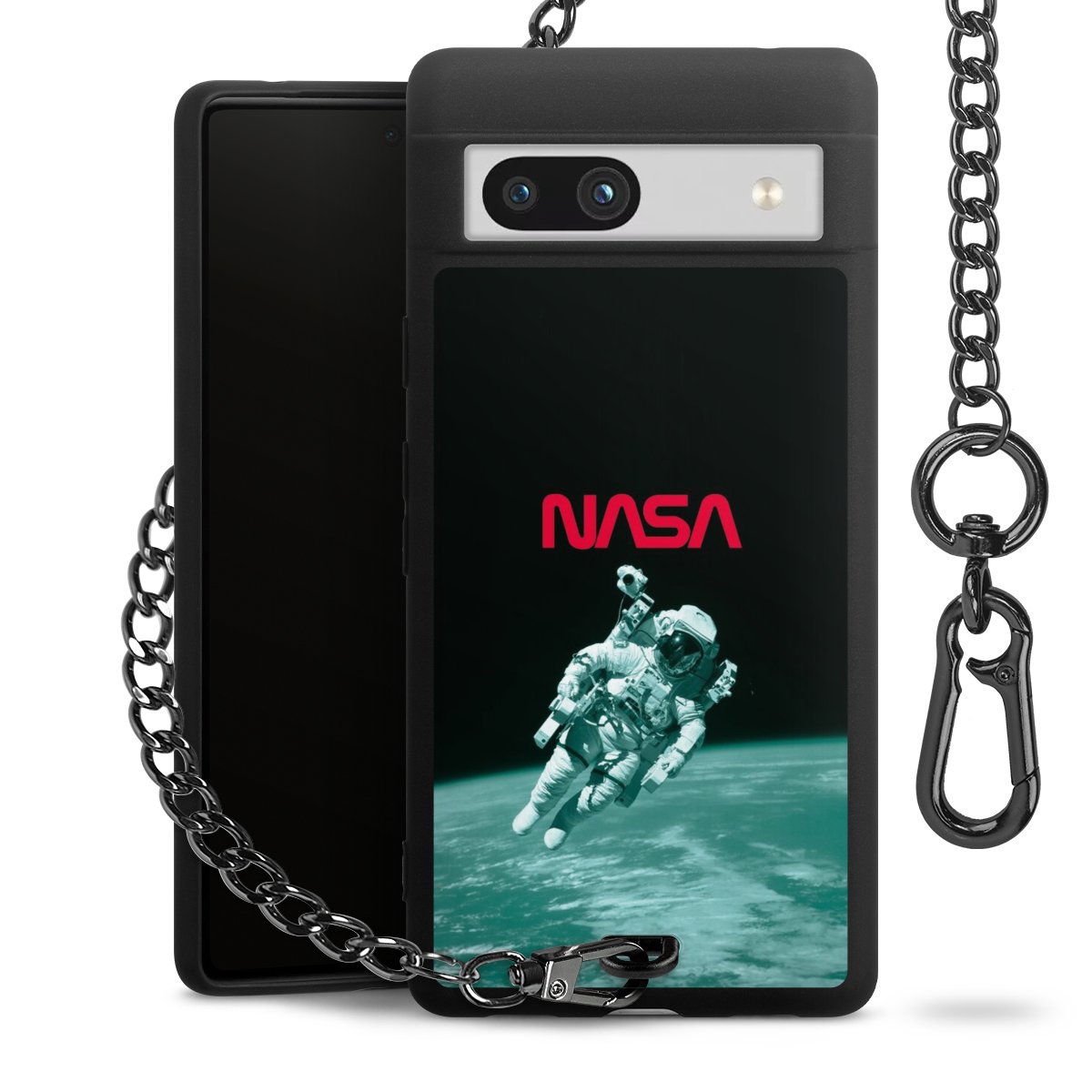 Die mattschwarze Silikon-Handyhülle besteht aus robustem TPU (thermoplastisches Polyurethan). Sie ist flexibel und schützt Dein Smartphone vor Stößen und Kratzern. Die Kette sowie der Karabinerhaken sind aus Metall in Gunmetal-Optik gefertigt. Für dieses Produkt kommen ausschließlich TÜV-geprüfte Materialien zum Einsatz.
