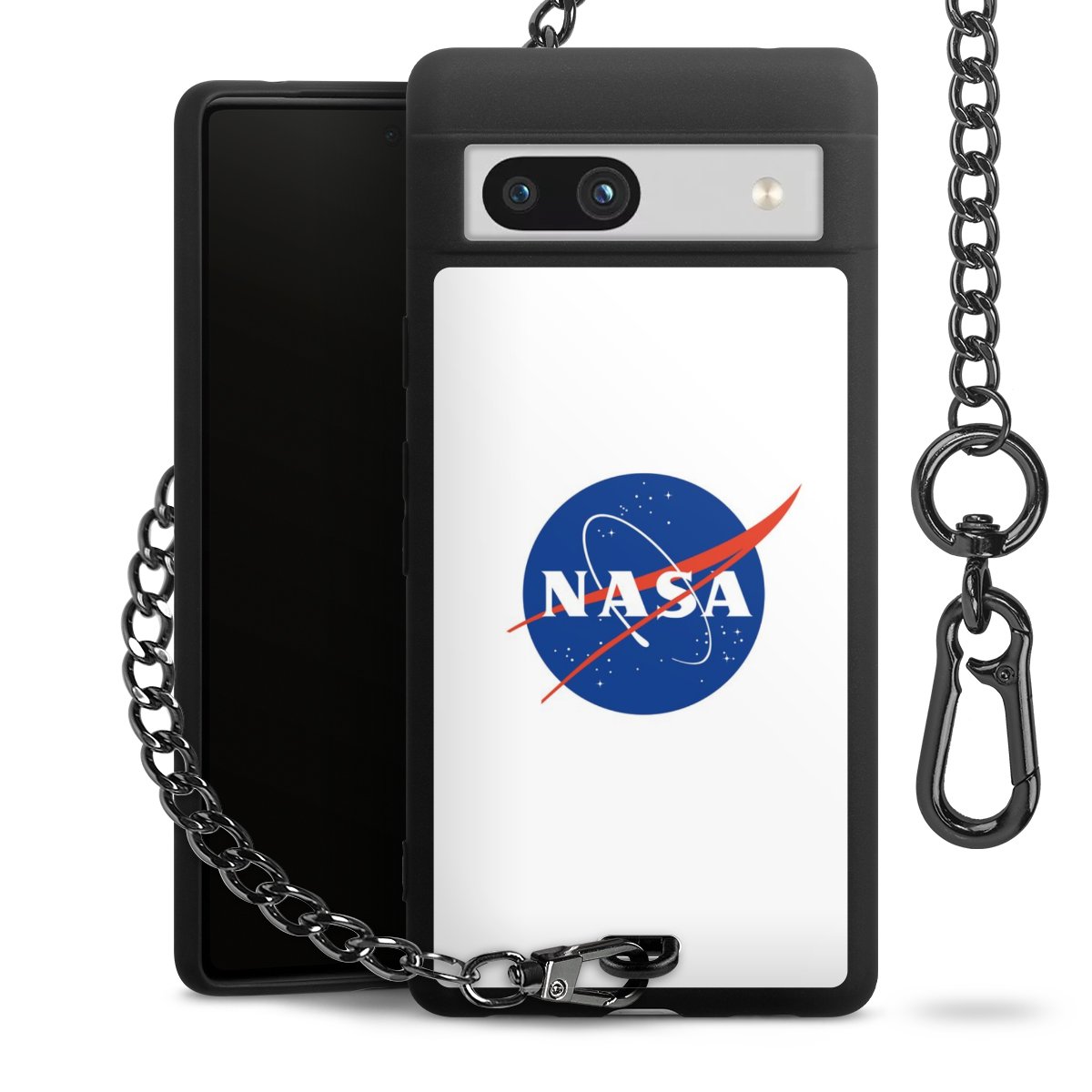 Die mattschwarze Silikon-Handyhülle besteht aus robustem TPU (thermoplastisches Polyurethan). Sie ist flexibel und schützt Dein Smartphone vor Stößen und Kratzern. Die Kette sowie der Karabinerhaken sind aus Metall in Gunmetal-Optik gefertigt. Für dieses Produkt kommen ausschließlich TÜV-geprüfte Materialien zum Einsatz.