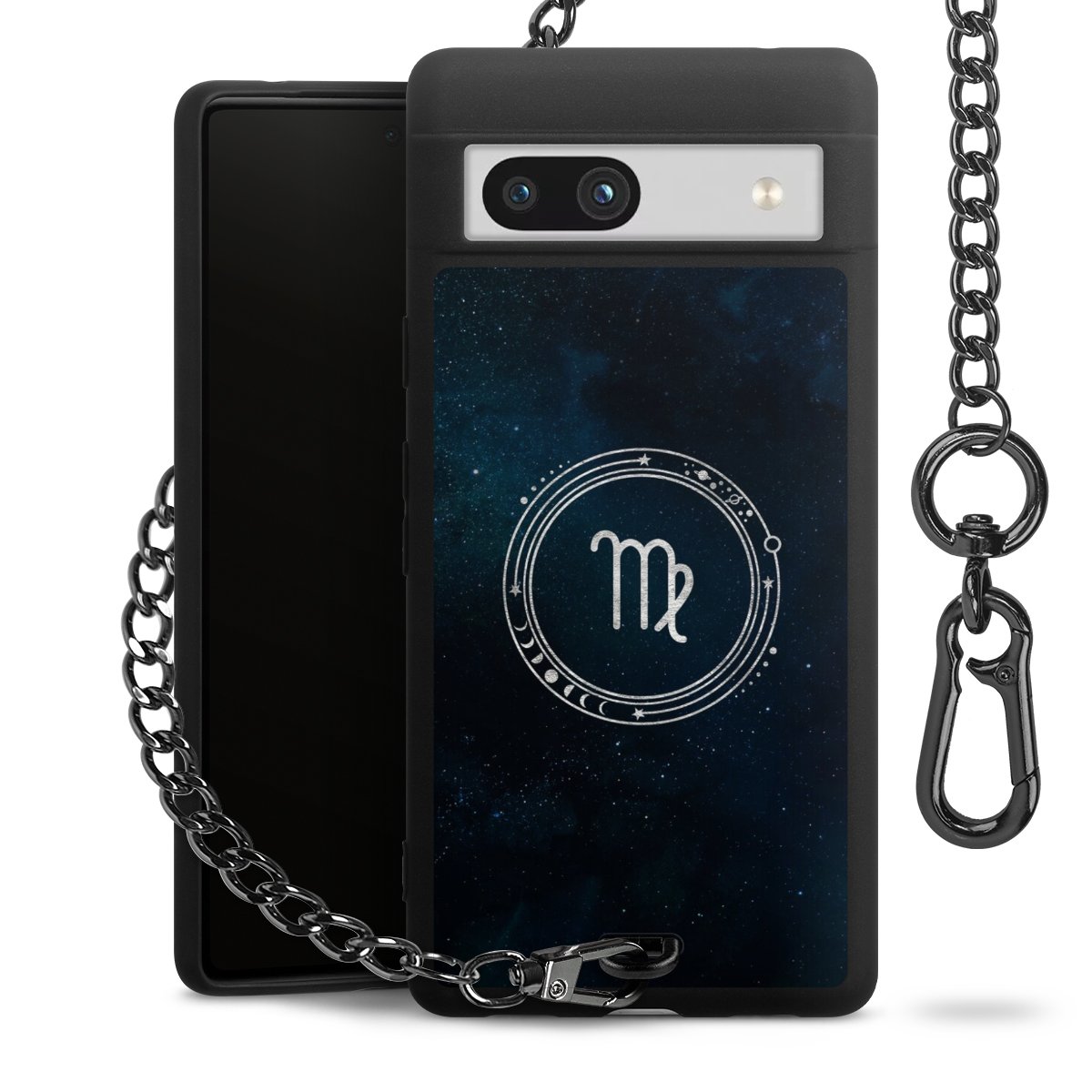 Die mattschwarze Silikon-Handyhülle besteht aus robustem TPU (thermoplastisches Polyurethan). Sie ist flexibel und schützt Dein Smartphone vor Stößen und Kratzern. Die Kette sowie der Karabinerhaken sind aus Metall in Gunmetal-Optik gefertigt. Für dieses Produkt kommen ausschließlich TÜV-geprüfte Materialien zum Einsatz.