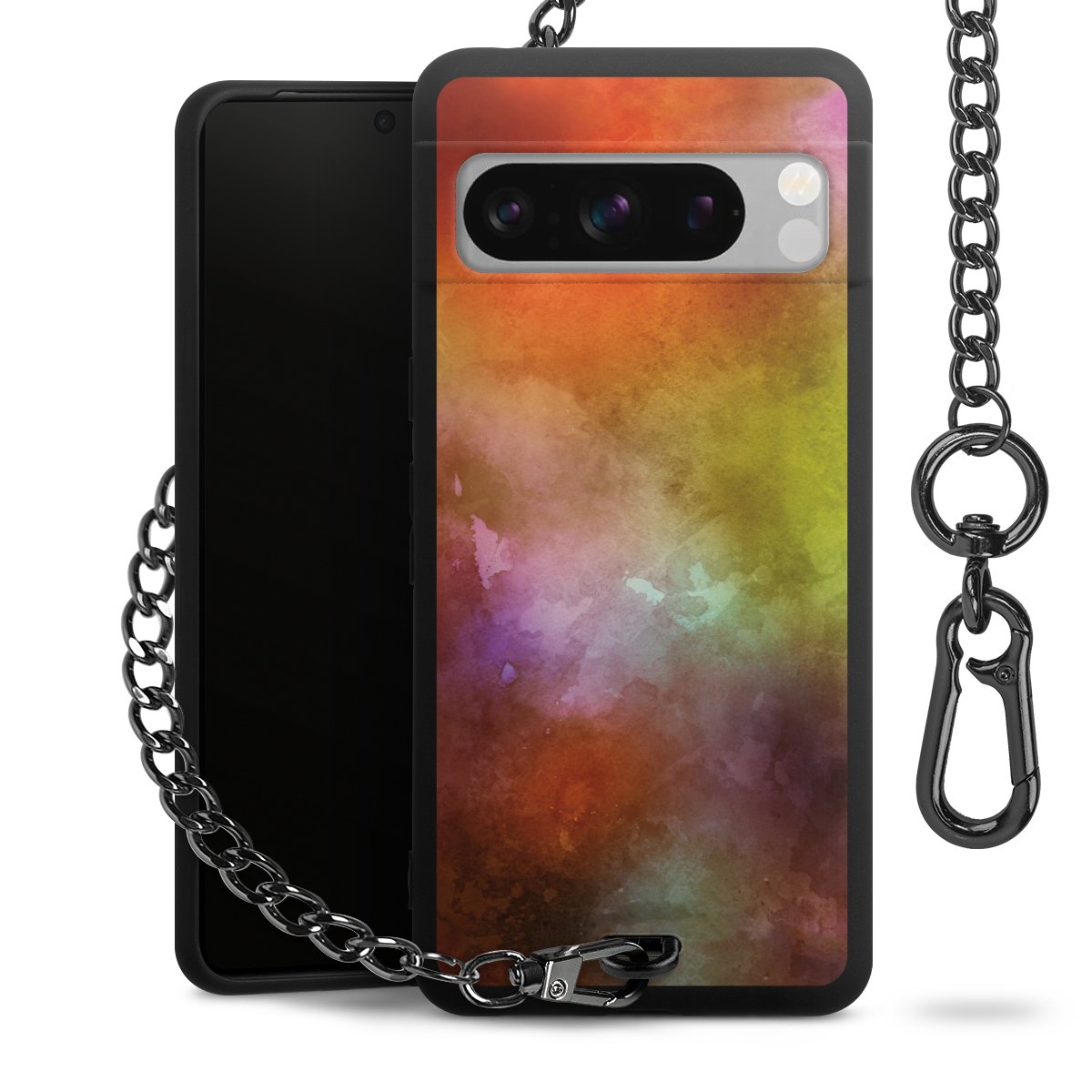 • Mattschwarze Handyhülle mit Metallkette