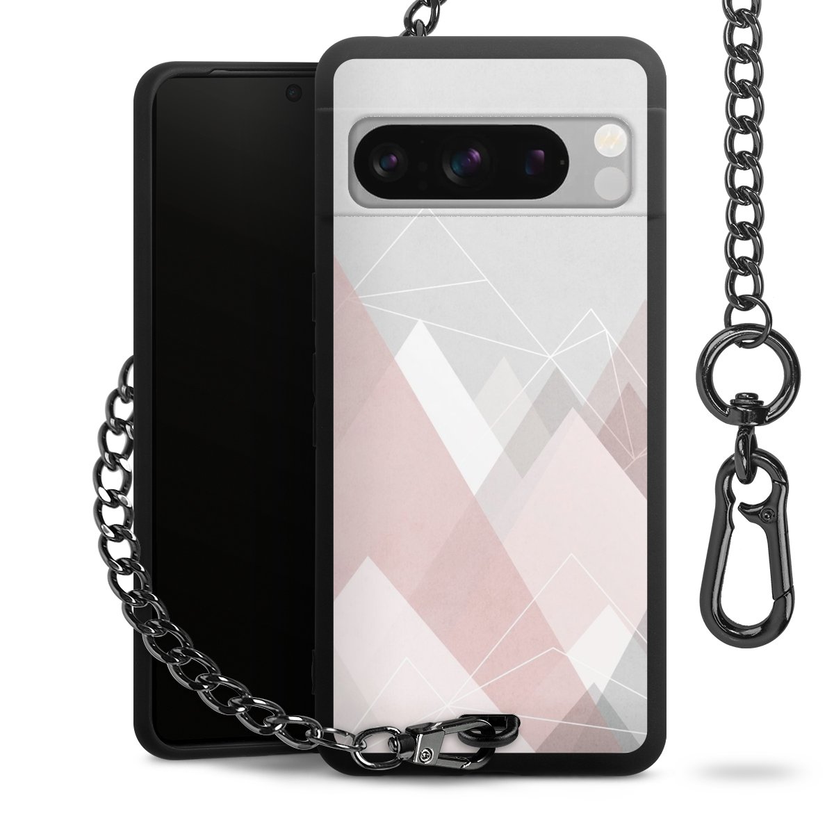 • Mattschwarze Handyhülle mit Metallkette