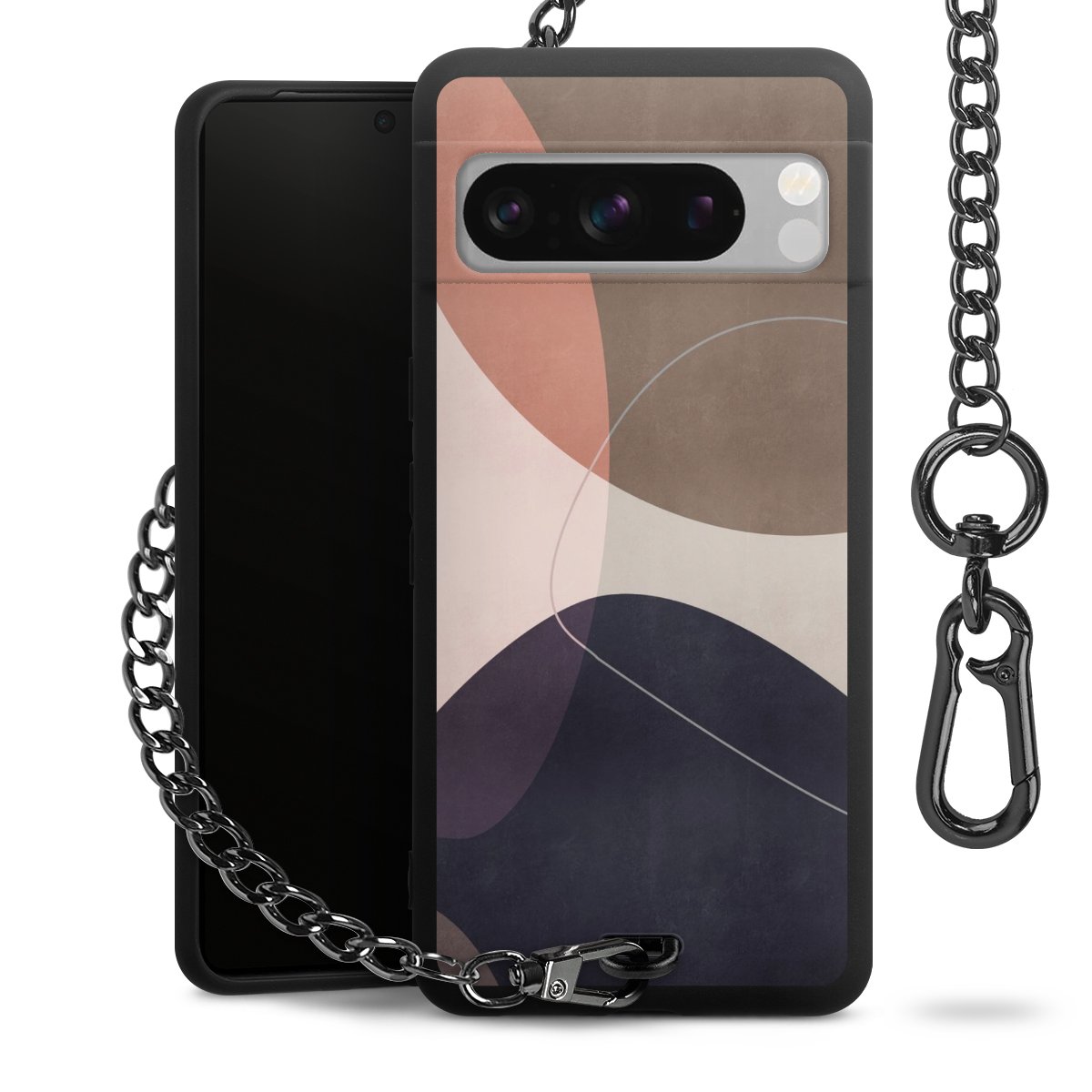 • Mattschwarze Handyhülle mit Metallkette