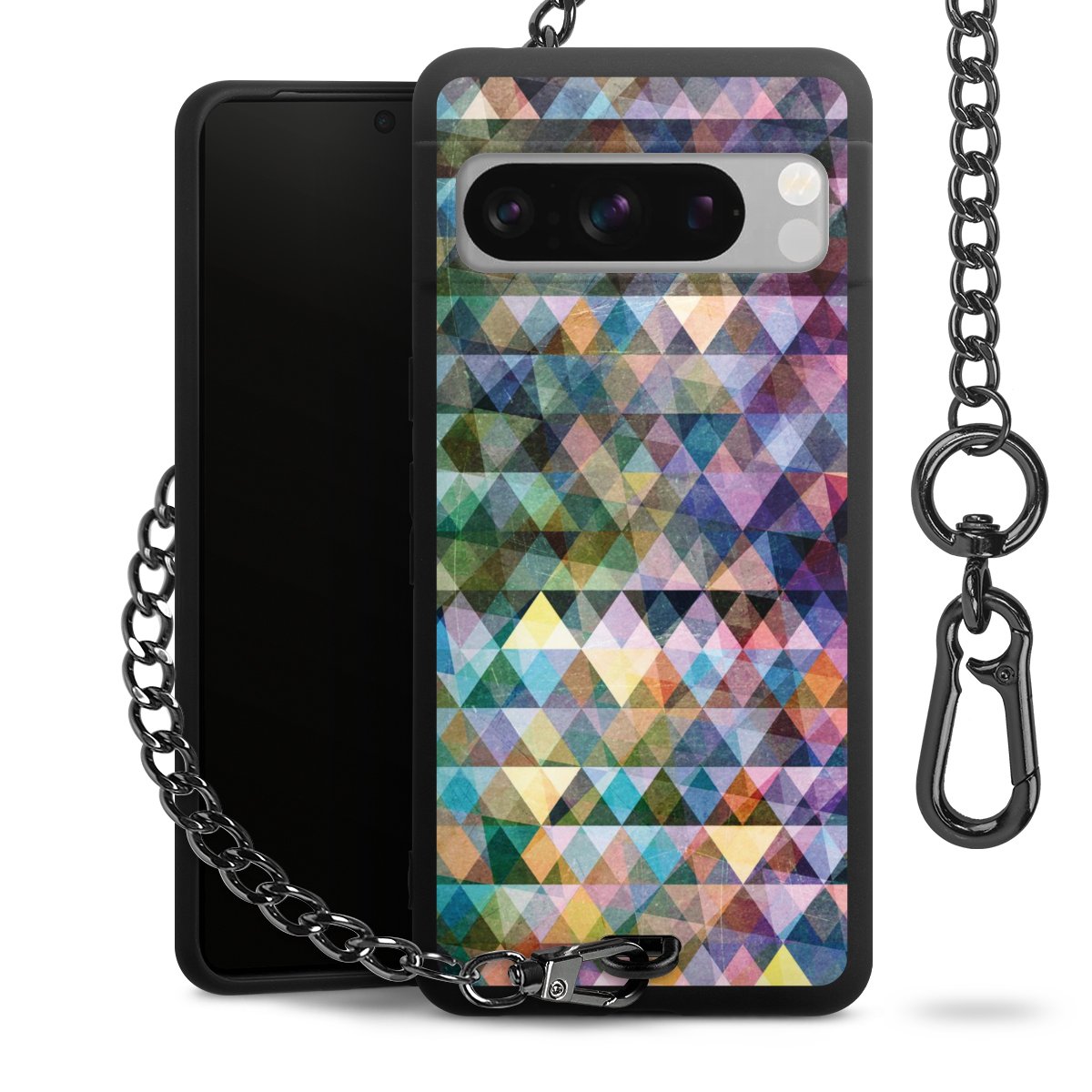 Die mattschwarze Silikon-Handyhülle besteht aus robustem TPU (thermoplastisches Polyurethan). Sie ist flexibel und schützt Dein Smartphone vor Stößen und Kratzern. Die Kette sowie der Karabinerhaken sind aus Metall in Gunmetal-Optik gefertigt. Für dieses Produkt kommen ausschließlich TÜV-geprüfte Materialien zum Einsatz.