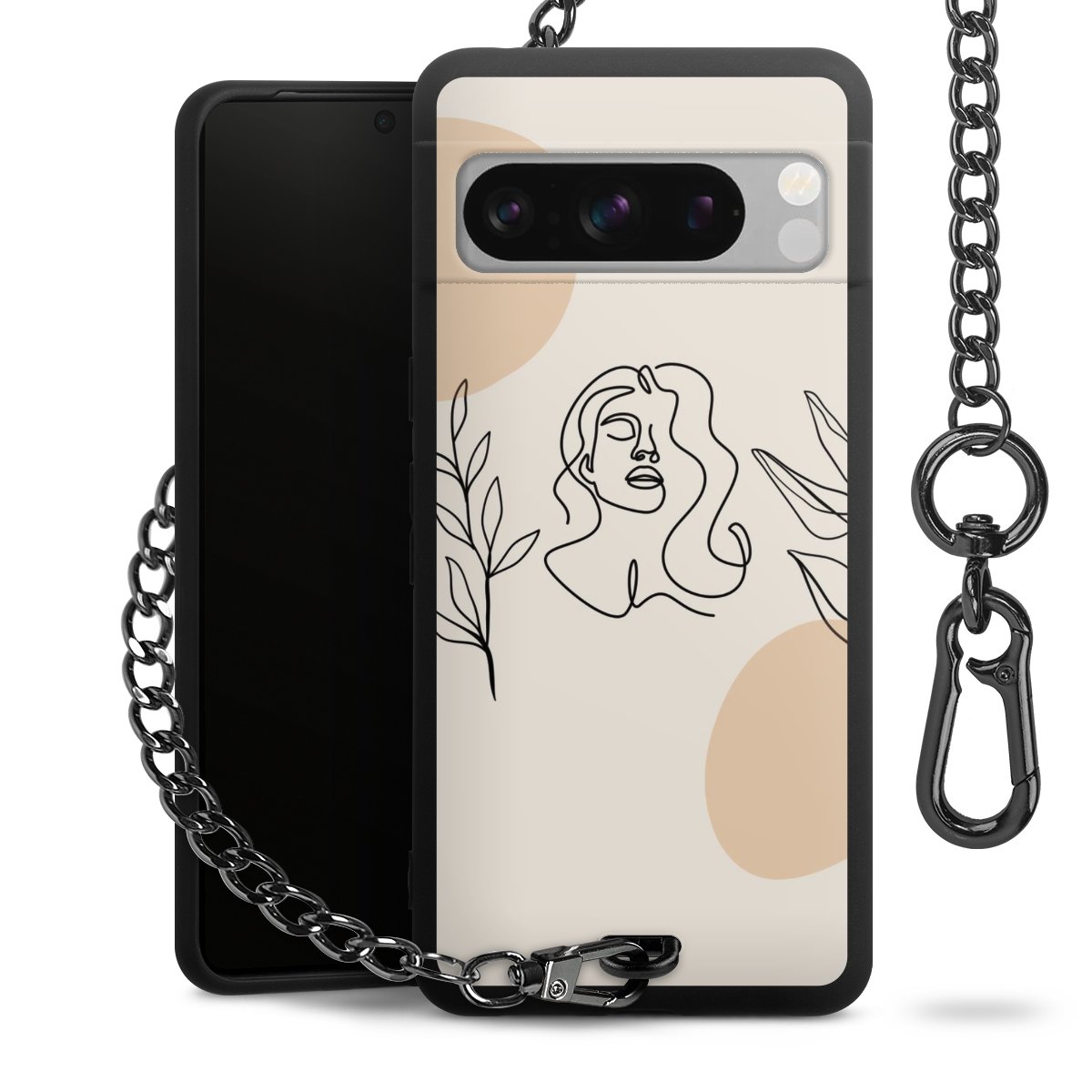 - Mattschwarze Handyhülle mit Metallkette