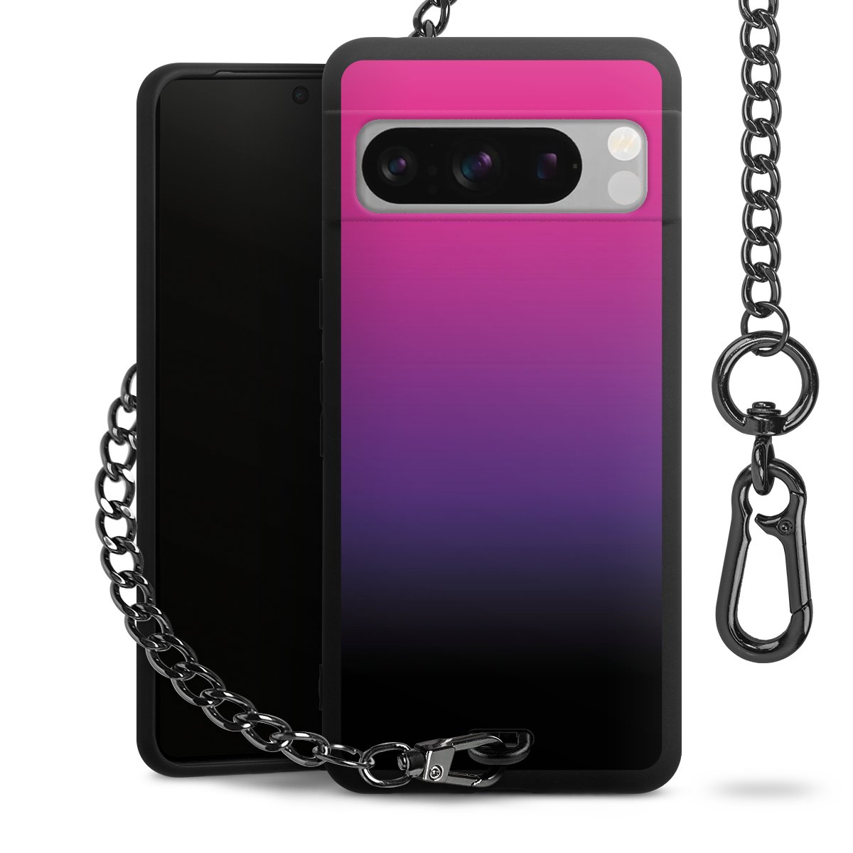 • Mattschwarze Handyhülle mit Metallkette