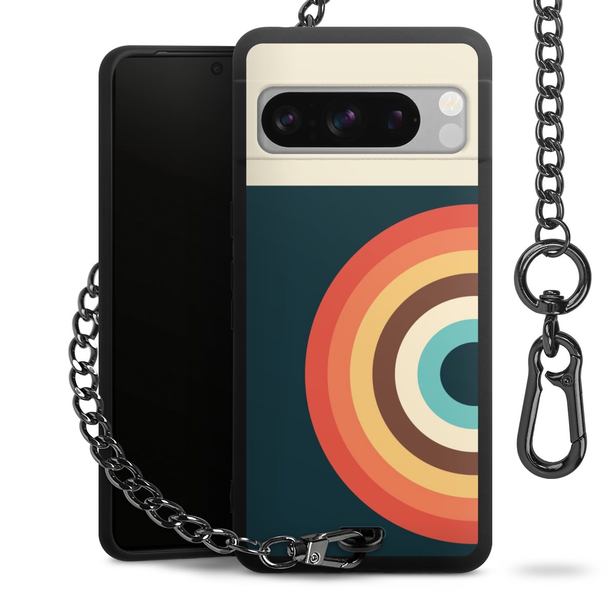 • Mattschwarze Handyhülle mit Metallkette