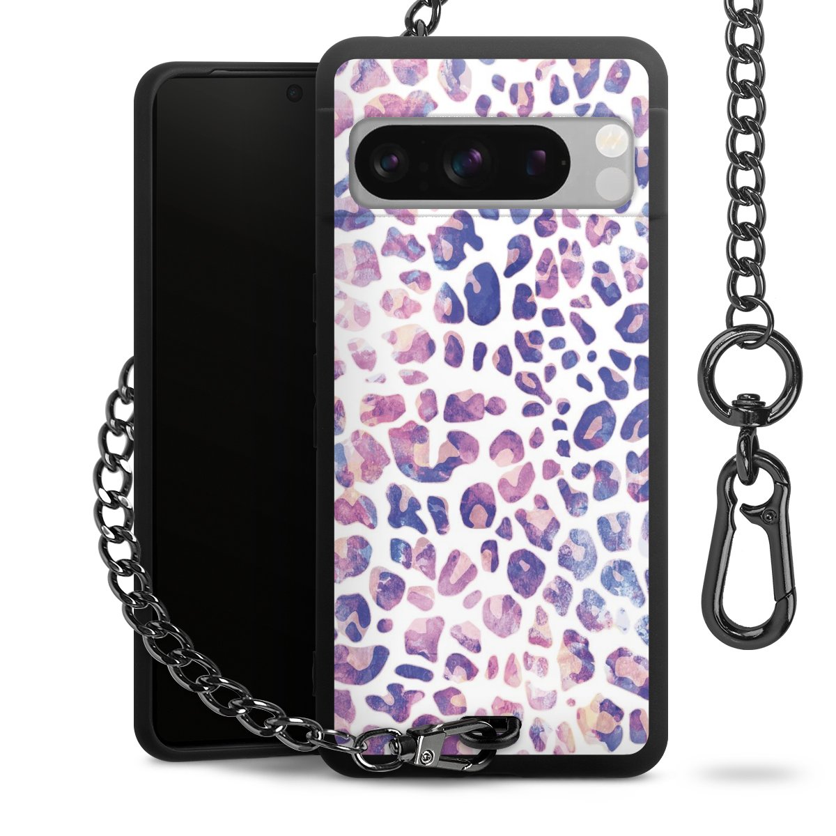• Mattschwarze Handyhülle mit Metallkette