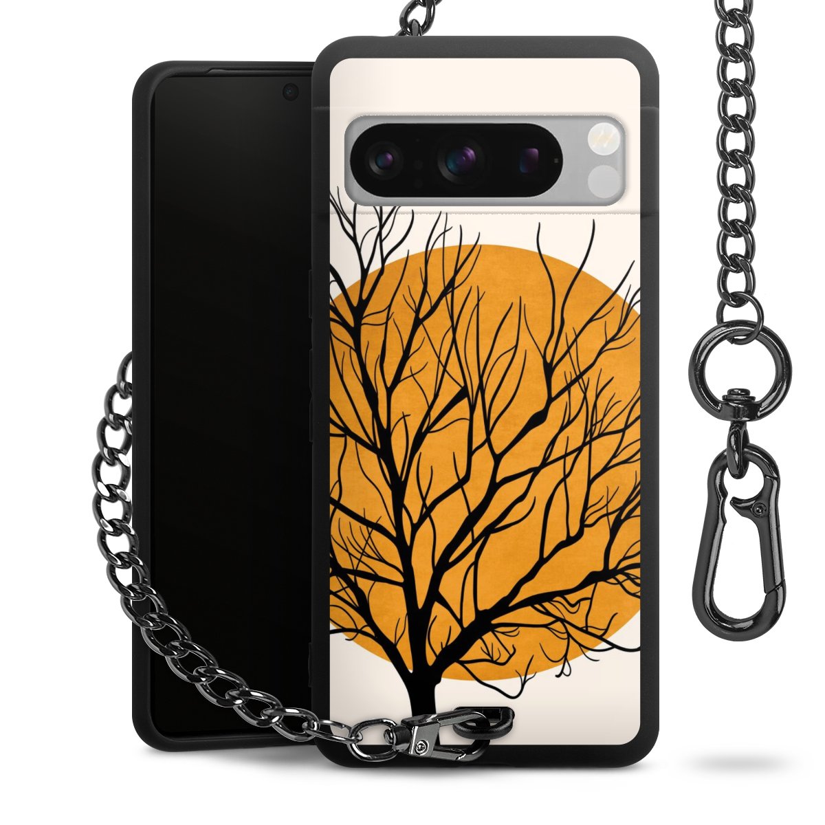 • Mattschwarze Handyhülle mit Metallkette
