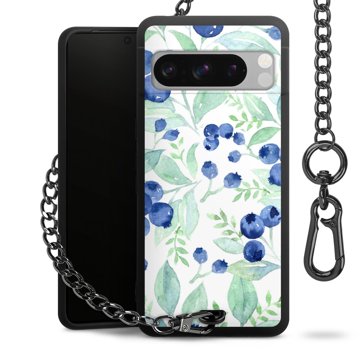 • Mattschwarze Handyhülle mit Metallkette