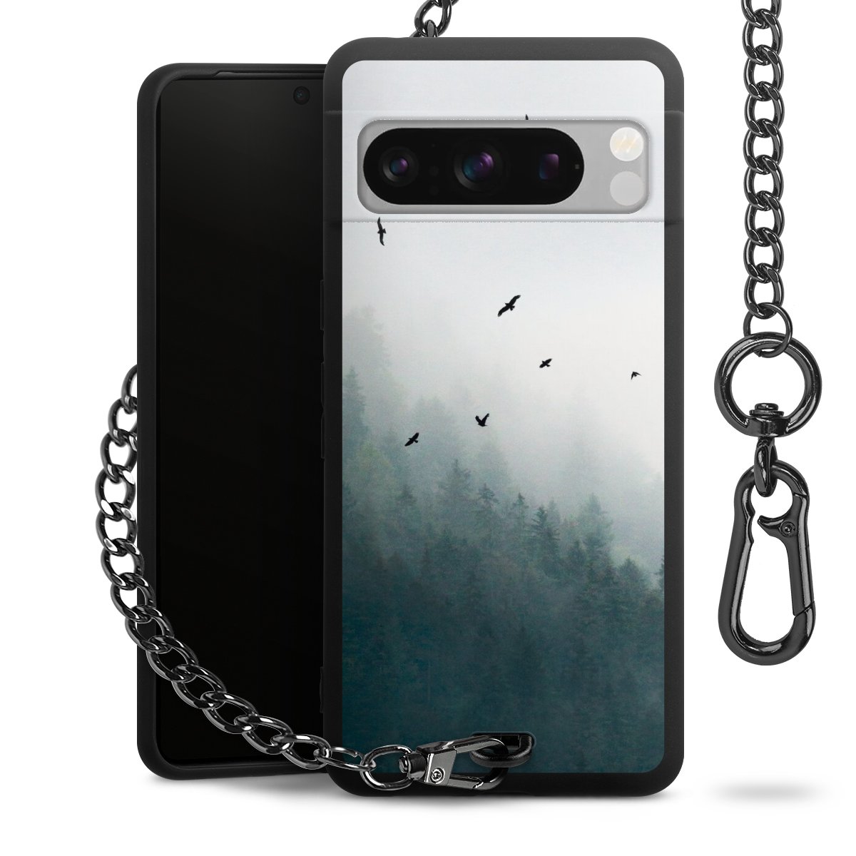 Die mattschwarze Silikon-Handyhülle besteht aus robustem TPU (thermoplastisches Polyurethan). Sie ist flexibel und schützt Dein Smartphone vor Stößen und Kratzern. Die Kette sowie der Karabinerhaken sind aus Metall in Gunmetal-Optik gefertigt. Für dieses Produkt kommen ausschließlich TÜV-geprüfte Materialien zum Einsatz.