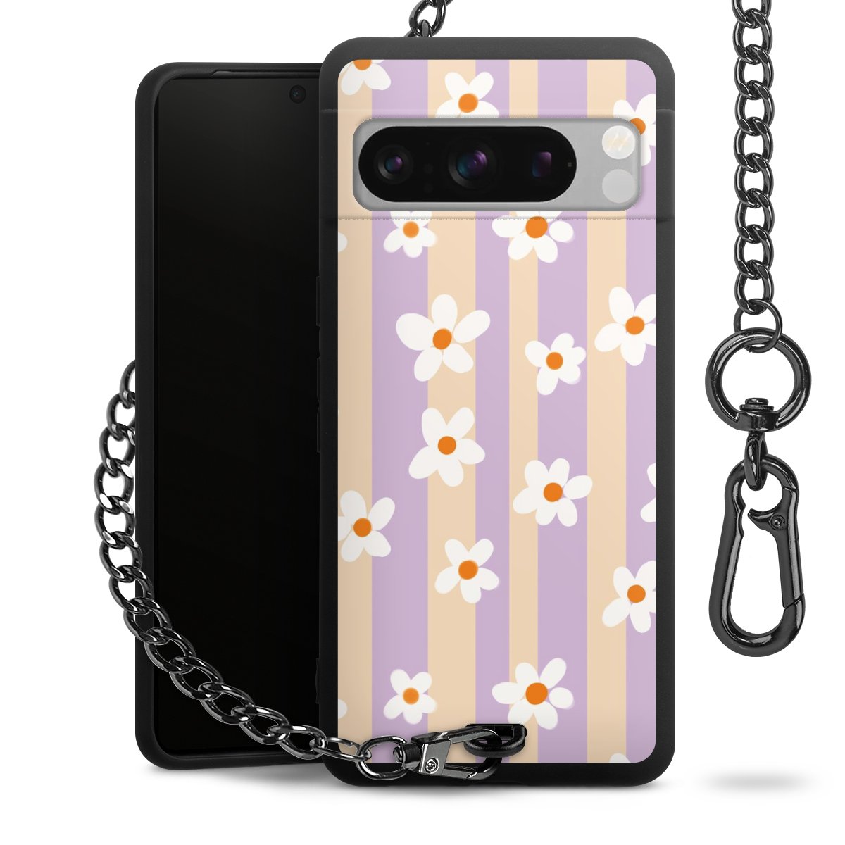 • Mattschwarze Handyhülle mit Metallkette