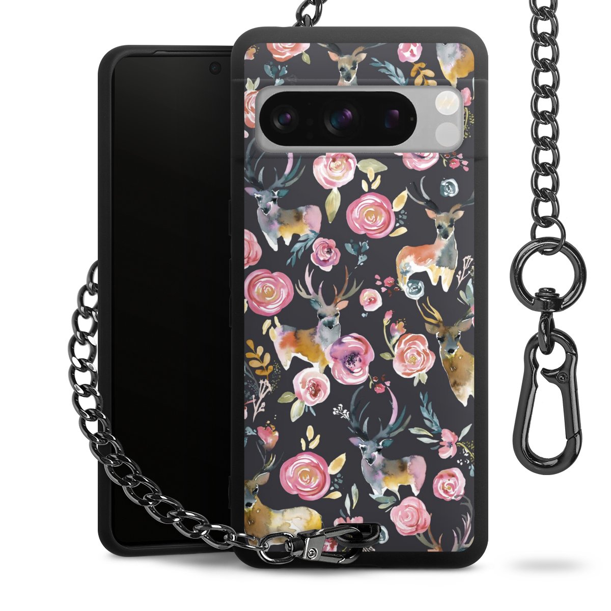 • Mattschwarze Handyhülle mit Metallkette