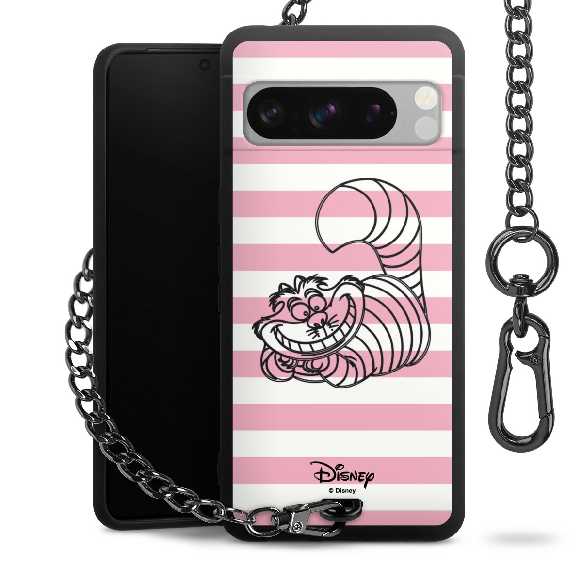Die mattschwarze Silikon-Handyhülle besteht aus robustem TPU (thermoplastisches Polyurethan). Sie ist flexibel und schützt Dein Smartphone vor Stößen und Kratzern. Die Kette sowie der Karabinerhaken sind aus Metall in Gunmetal-Optik gefertigt. Für dieses Produkt kommen ausschließlich TÜV-geprüfte Materialien zum Einsatz.