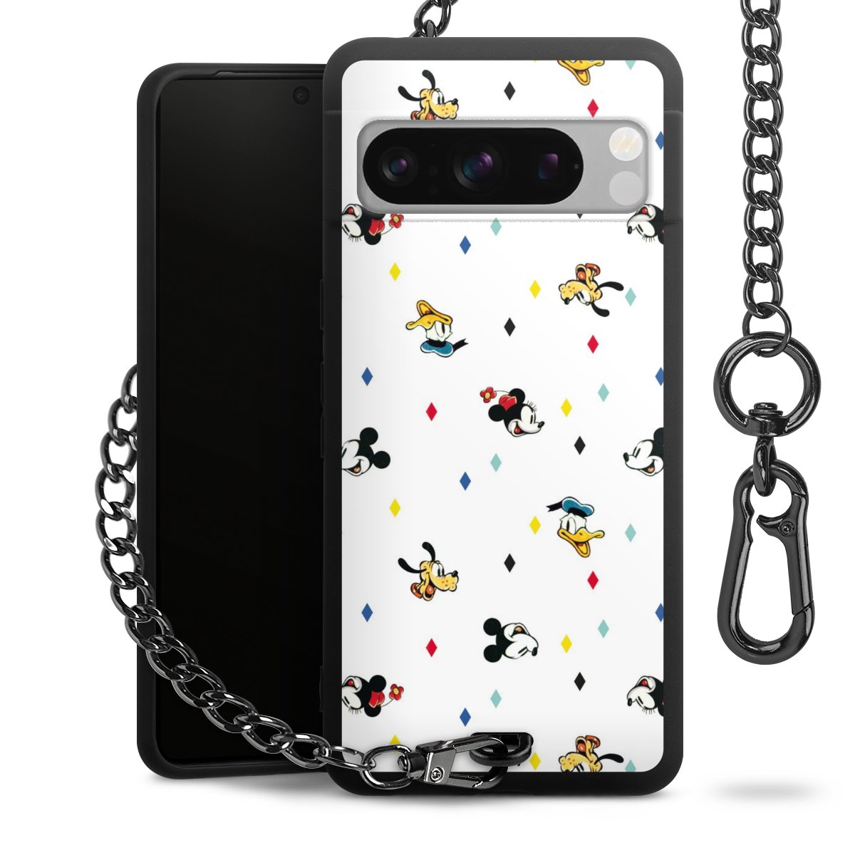 • Mattschwarze Handyhülle mit Metallkette