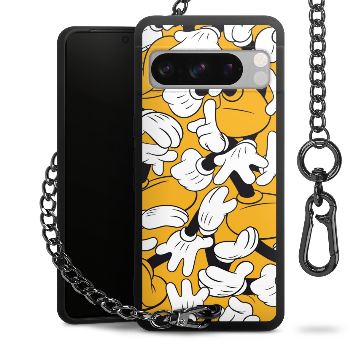 Die mattschwarze Silikon-Handyhülle besteht aus robustem TPU (thermoplastisches Polyurethan). Sie ist flexibel und schützt Dein Smartphone vor Stößen und Kratzern. Die Kette sowie der Karabinerhaken sind aus Metall in Gunmetal-Optik gefertigt. Für dieses Produkt kommen ausschließlich TÜV-geprüfte Materialien zum Einsatz.