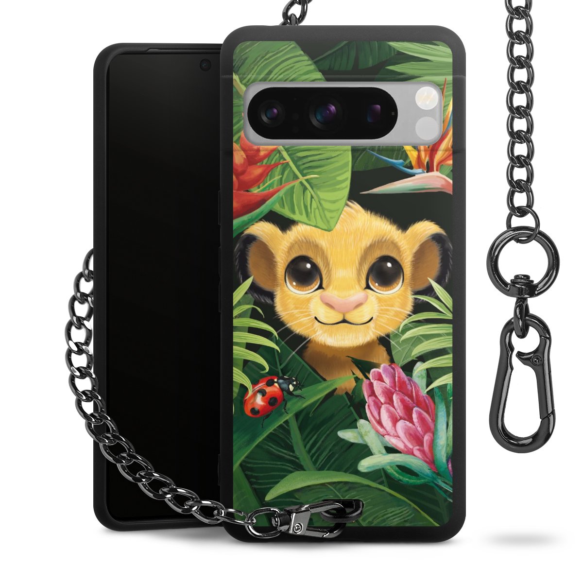 Die mattschwarze Silikon-Handyhülle besteht aus robustem TPU (thermoplastisches Polyurethan). Sie ist flexibel und schützt Dein Smartphone vor Stößen und Kratzern. Die Kette sowie der Karabinerhaken sind aus Metall in Gunmetal-Optik gefertigt. Für dieses Produkt kommen ausschließlich TÜV-geprüfte Materialien zum Einsatz.