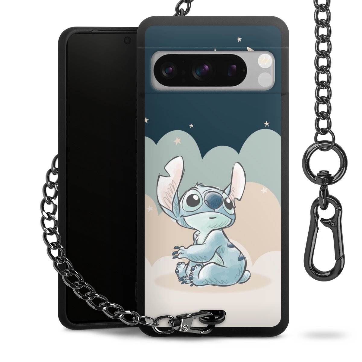 • Mattschwarze Handyhülle mit Metallkette