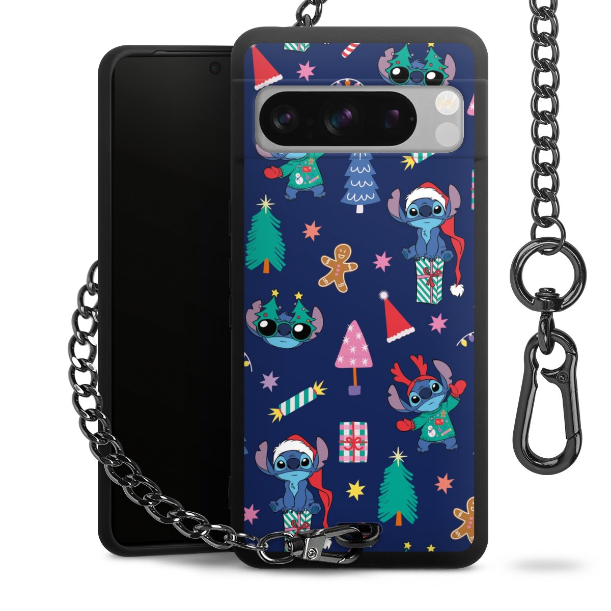 • Mattschwarze Handyhülle mit Metallkette