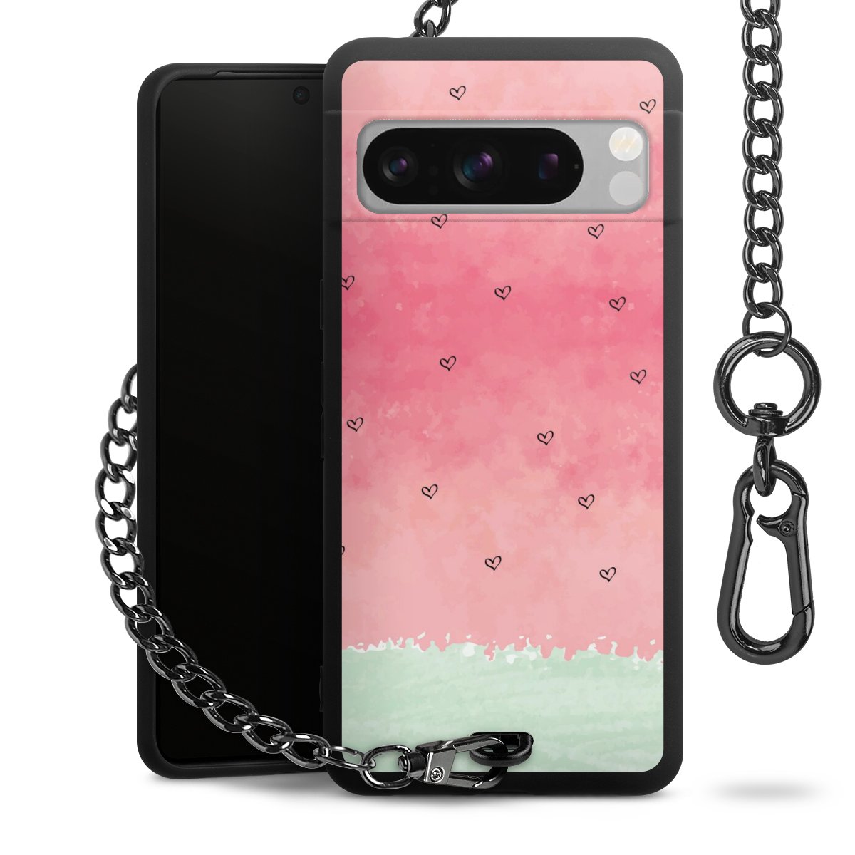 • Mattschwarze Handyhülle mit Metallkette
