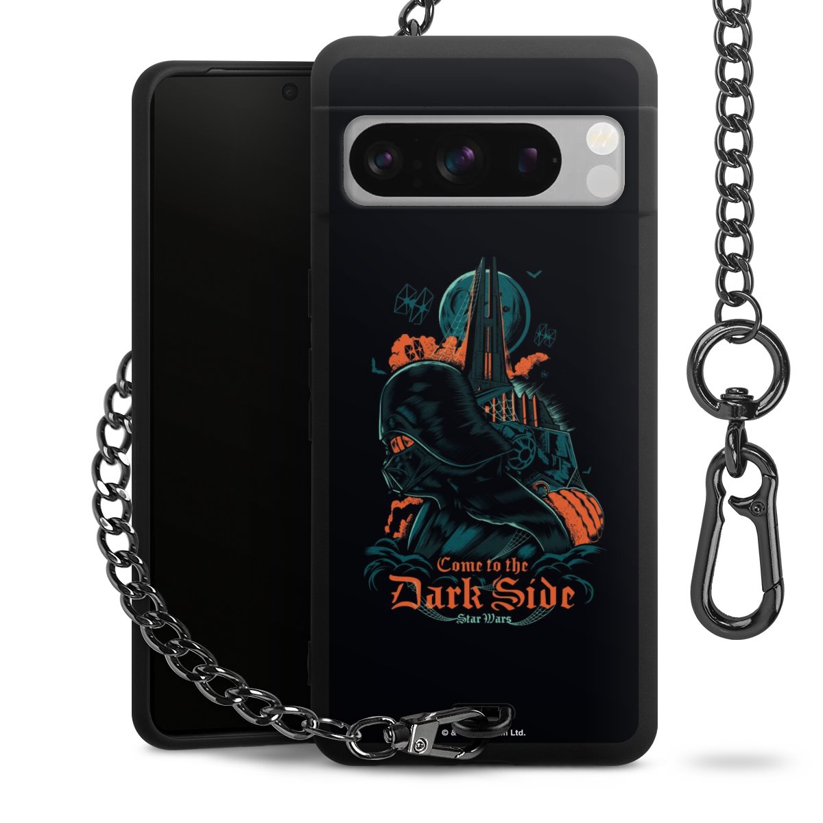 Die mattschwarze Silikon-Handyhülle besteht aus robustem TPU (thermoplastisches Polyurethan). Sie ist flexibel und schützt Dein Smartphone vor Stößen und Kratzern. Die Kette sowie der Karabinerhaken sind aus Metall in Gunmetal-Optik gefertigt. Für dieses Produkt kommen ausschließlich TÜV-geprüfte Materialien zum Einsatz.