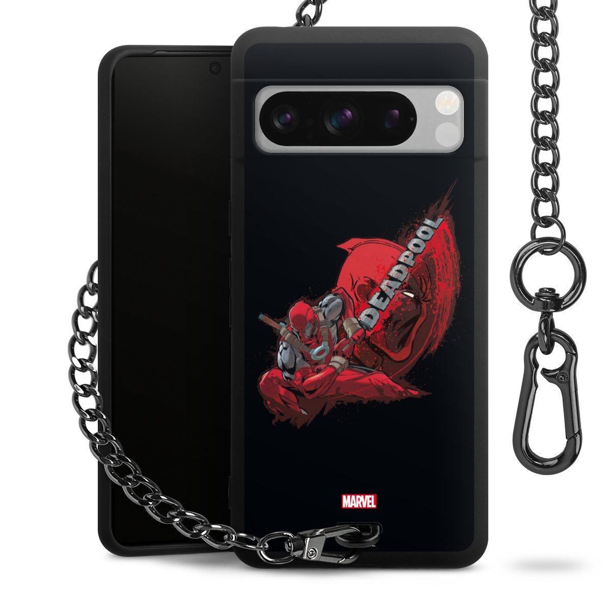 Die mattschwarze Silikon-Handyhülle besteht aus robustem TPU (thermoplastisches Polyurethan). Sie ist flexibel und schützt Dein Smartphone vor Stößen und Kratzern. Die Kette sowie der Karabinerhaken sind aus Metall in Gunmetal-Optik gefertigt. Für dieses Produkt kommen ausschließlich TÜV-geprüfte Materialien zum Einsatz.