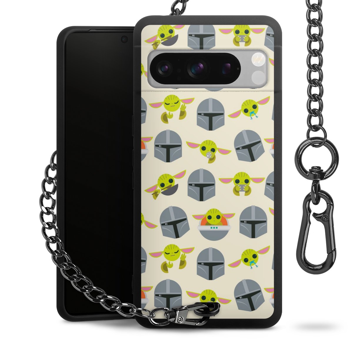 Die mattschwarze Silikon-Handyhülle besteht aus robustem TPU (thermoplastisches Polyurethan). Sie ist flexibel und schützt Dein Smartphone vor Stößen und Kratzern. Die Kette sowie der Karabinerhaken sind aus Metall in Gunmetal-Optik gefertigt. Für dieses Produkt kommen ausschließlich TÜV-geprüfte Materialien zum Einsatz.