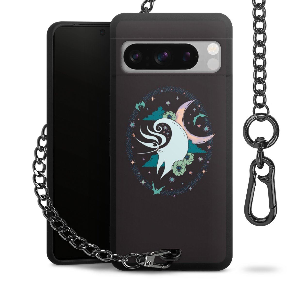 • Mattschwarze Handyhülle mit Metallkette