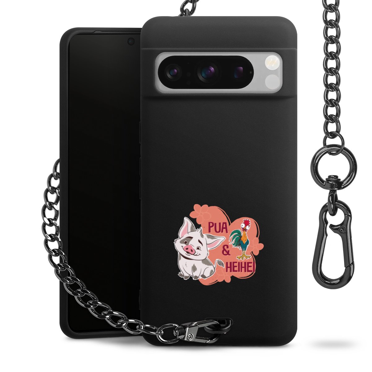 • Mattschwarze Handyhülle mit Metallkette