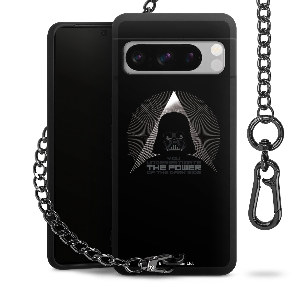 Die mattschwarze Silikon-Handyhülle besteht aus robustem TPU (thermoplastisches Polyurethan). Sie ist flexibel und schützt Dein Smartphone vor Stößen und Kratzern. Die Kette sowie der Karabinerhaken sind aus Metall in Gunmetal-Optik gefertigt. Für dieses Produkt kommen ausschließlich TÜV-geprüfte Materialien zum Einsatz.