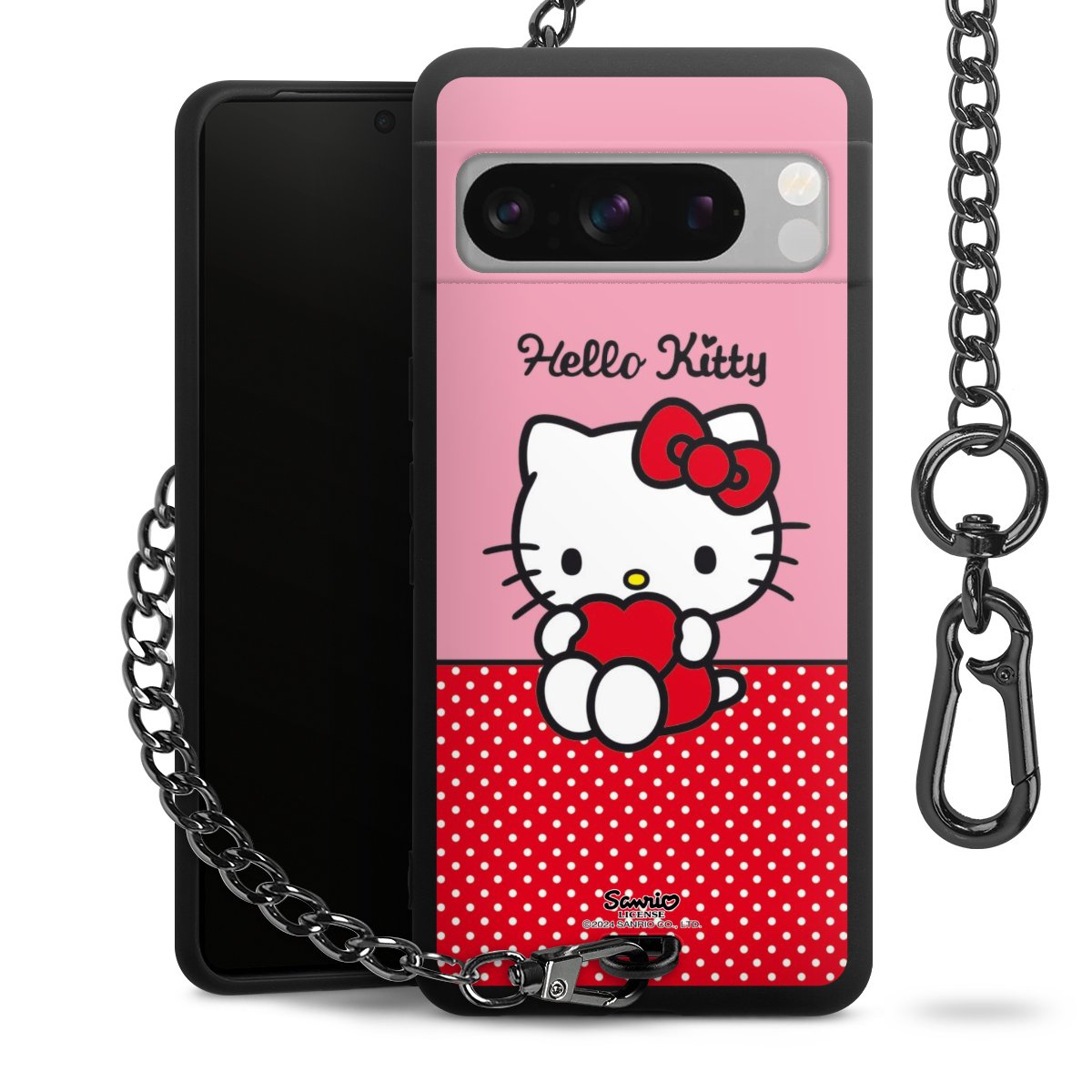 Die mattschwarze Silikon-Handyhülle besteht aus robustem TPU (thermoplastisches Polyurethan). Sie ist flexibel und schützt Dein Smartphone vor Stößen und Kratzern. Die Kette sowie der Karabinerhaken sind aus Metall in Gunmetal-Optik gefertigt. Für dieses Produkt kommen ausschließlich TÜV-geprüfte Materialien zum Einsatz.