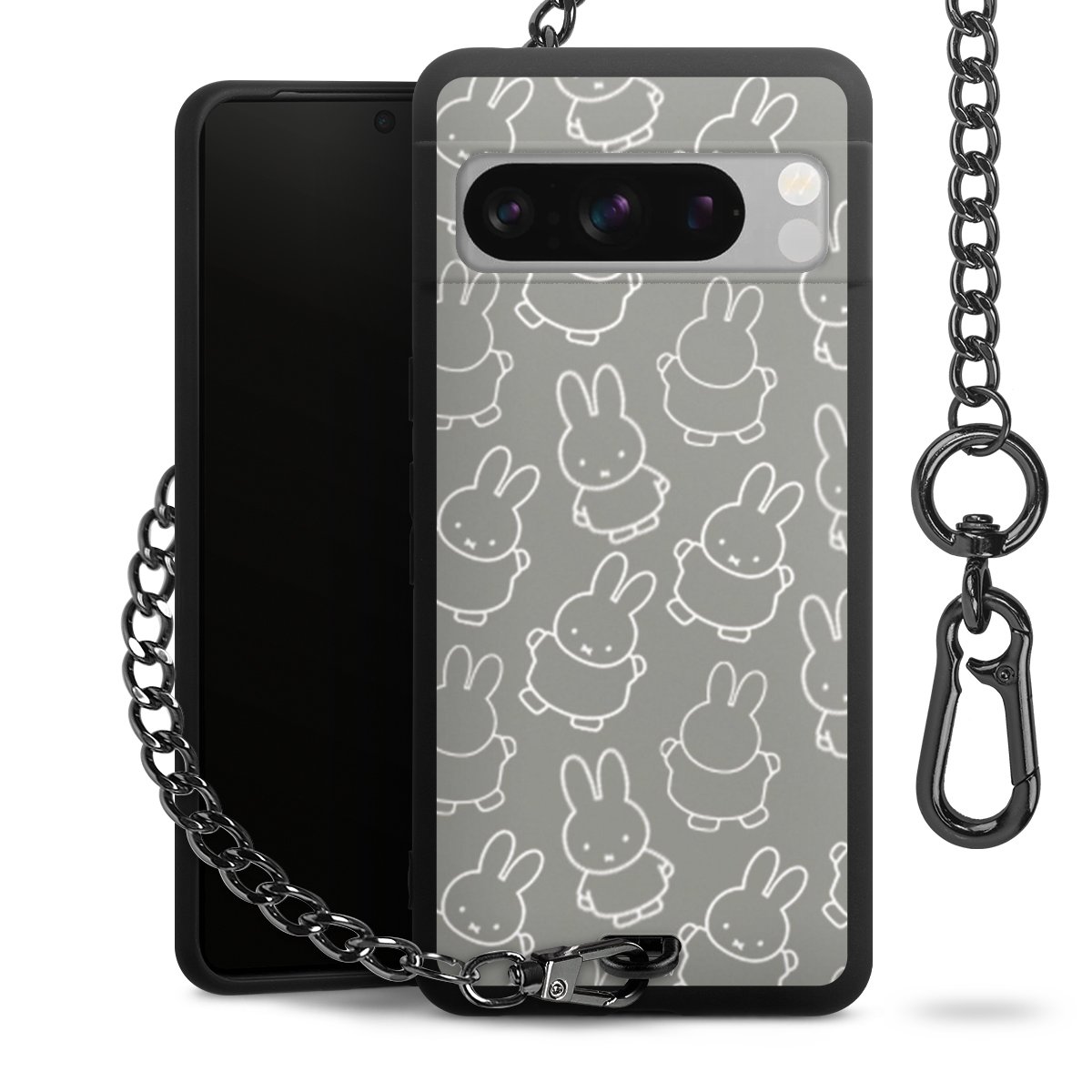 • Mattschwarze Handyhülle mit Metallkette