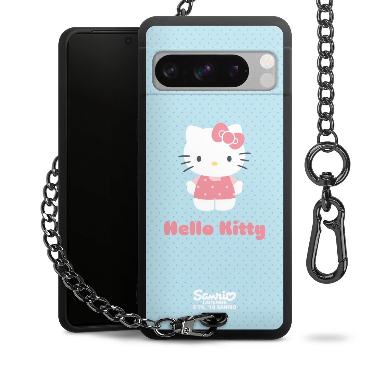 Die mattschwarze Silikon-Handyhülle besteht aus robustem TPU (thermoplastisches Polyurethan). Sie ist flexibel und schützt Dein Smartphone vor Stößen und Kratzern. Die Kette sowie der Karabinerhaken sind aus Metall in Gunmetal-Optik gefertigt. Für dieses Produkt kommen ausschließlich TÜV-geprüfte Materialien zum Einsatz.