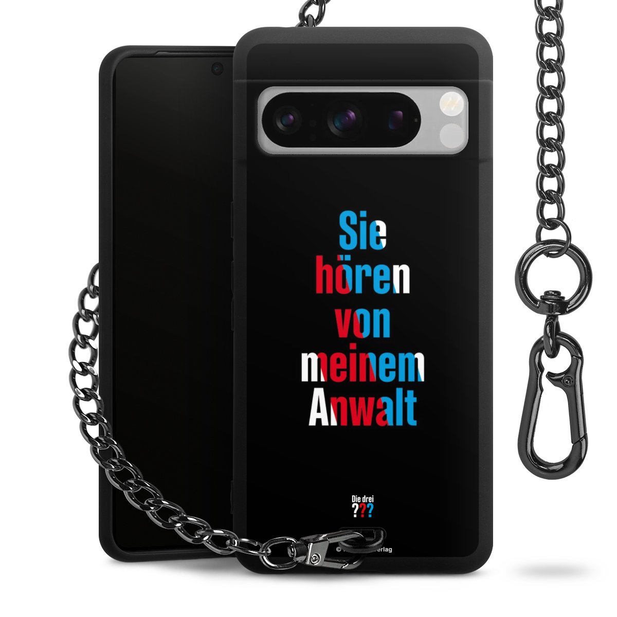 Die mattschwarze Silikon-Handyhülle besteht aus robustem TPU (thermoplastisches Polyurethan). Sie ist flexibel und schützt Dein Smartphone vor Stößen und Kratzern. Die Kette sowie der Karabinerhaken sind aus Metall in Gunmetal-Optik gefertigt. Für dieses Produkt kommen ausschließlich TÜV-geprüfte Materialien zum Einsatz.