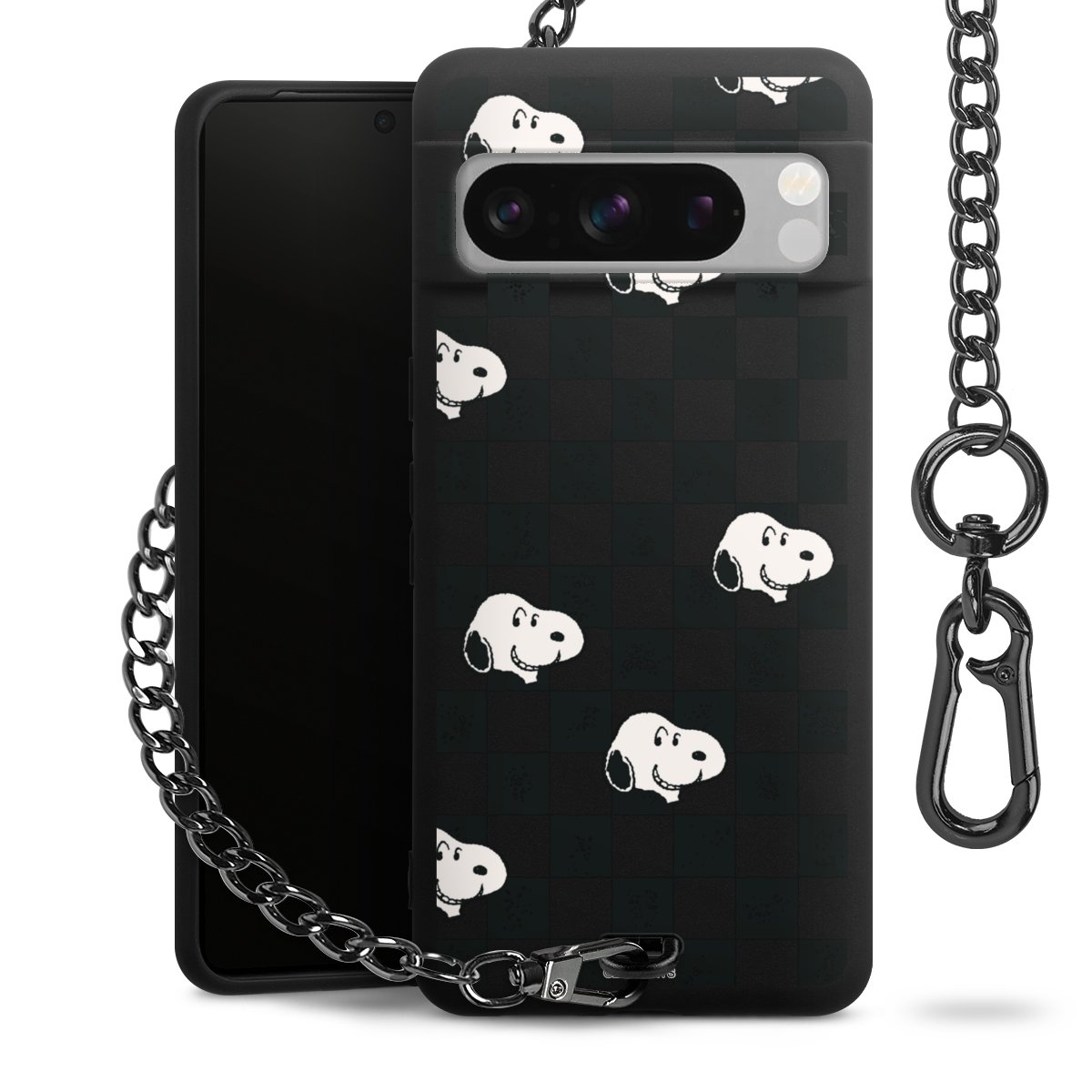 • Mattschwarze Handyhülle mit Metallkette