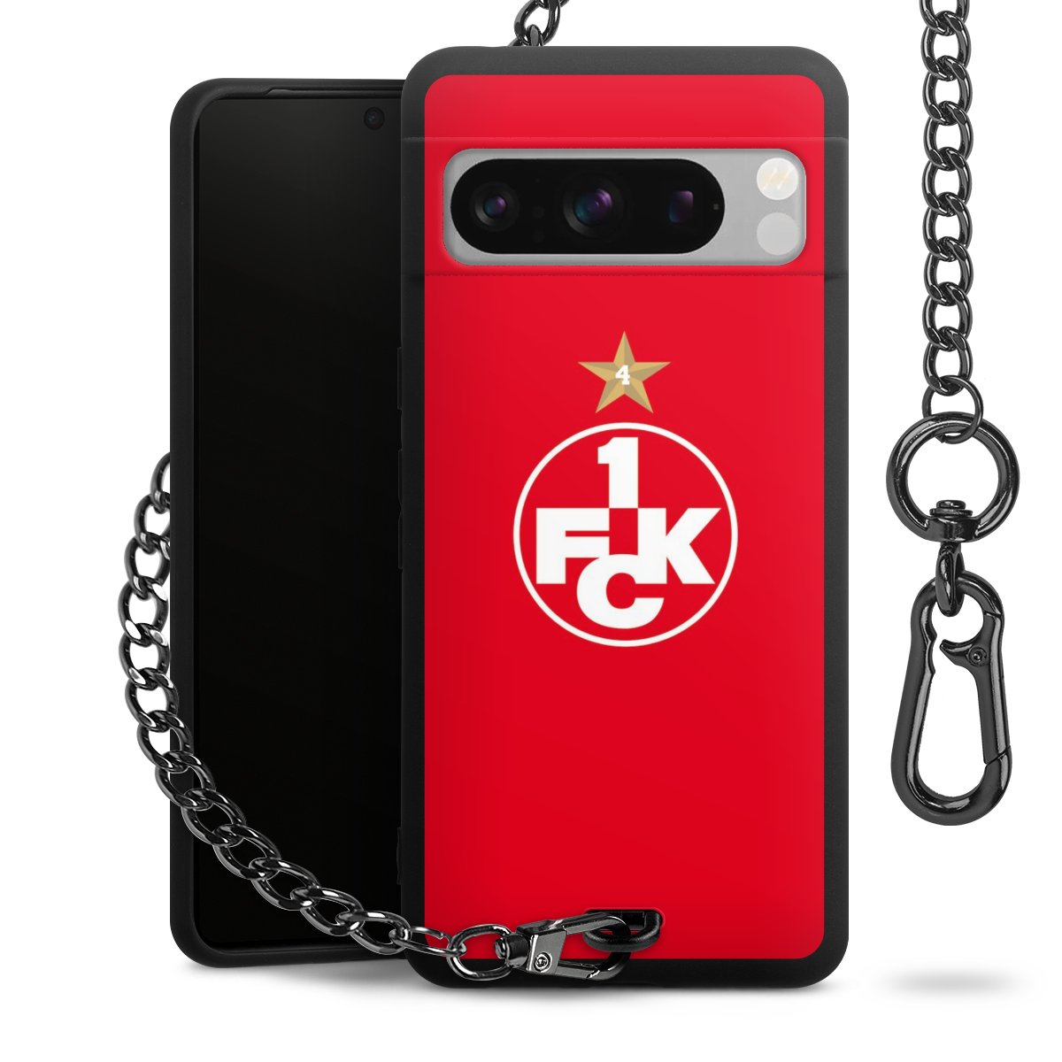 Die Handyhülle verfügt über eine mittig am unteren Rand platzierte Öse, an der die Metallkette stabil befestigt ist. Bestelle die Hülle einfach für Dein Smartphone-Modell, dann passt sie wie angegossen und Du brauchst sie bloß einmal anzudrücken. Handy in die Tasche, Karabiner an den Hosenbund – schon kann die Party starten.