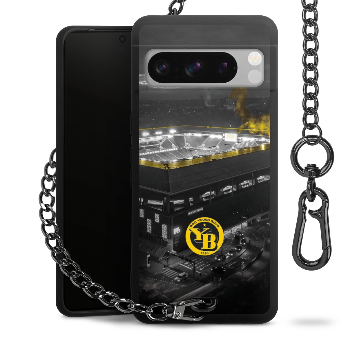 Die mattschwarze Silikon-Handyhülle besteht aus robustem TPU (thermoplastisches Polyurethan). Sie ist flexibel und schützt Dein Smartphone vor Stößen und Kratzern. Die Kette sowie der Karabinerhaken sind aus Metall in Gunmetal-Optik gefertigt. Für dieses Produkt kommen ausschließlich TÜV-geprüfte Materialien zum Einsatz.