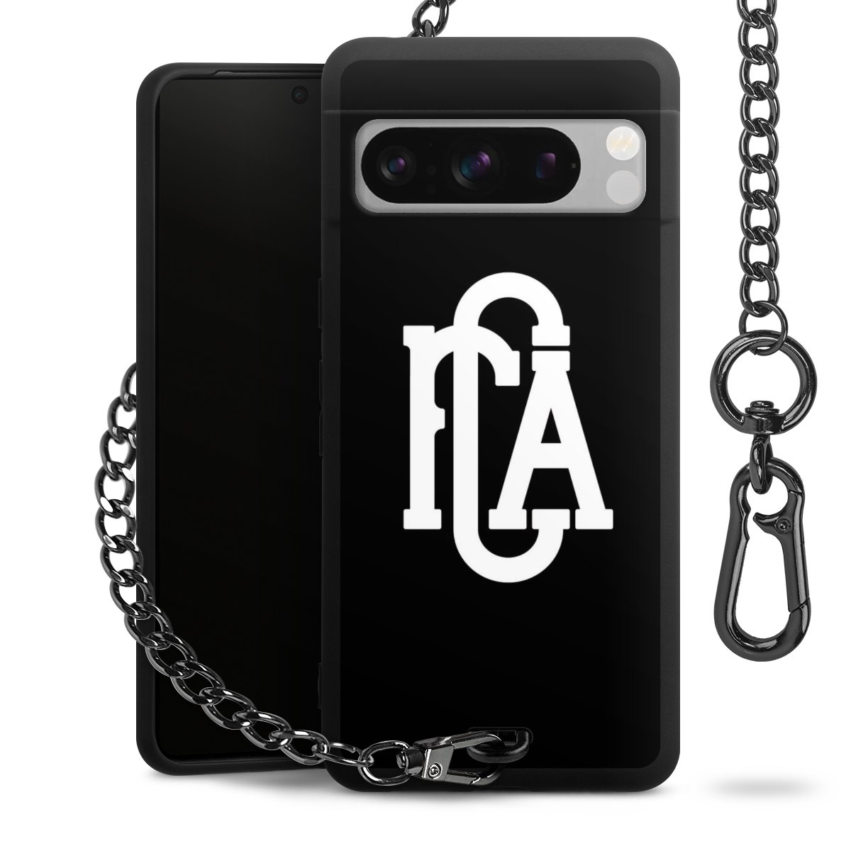 • Mattschwarze Handyhülle mit Metallkette