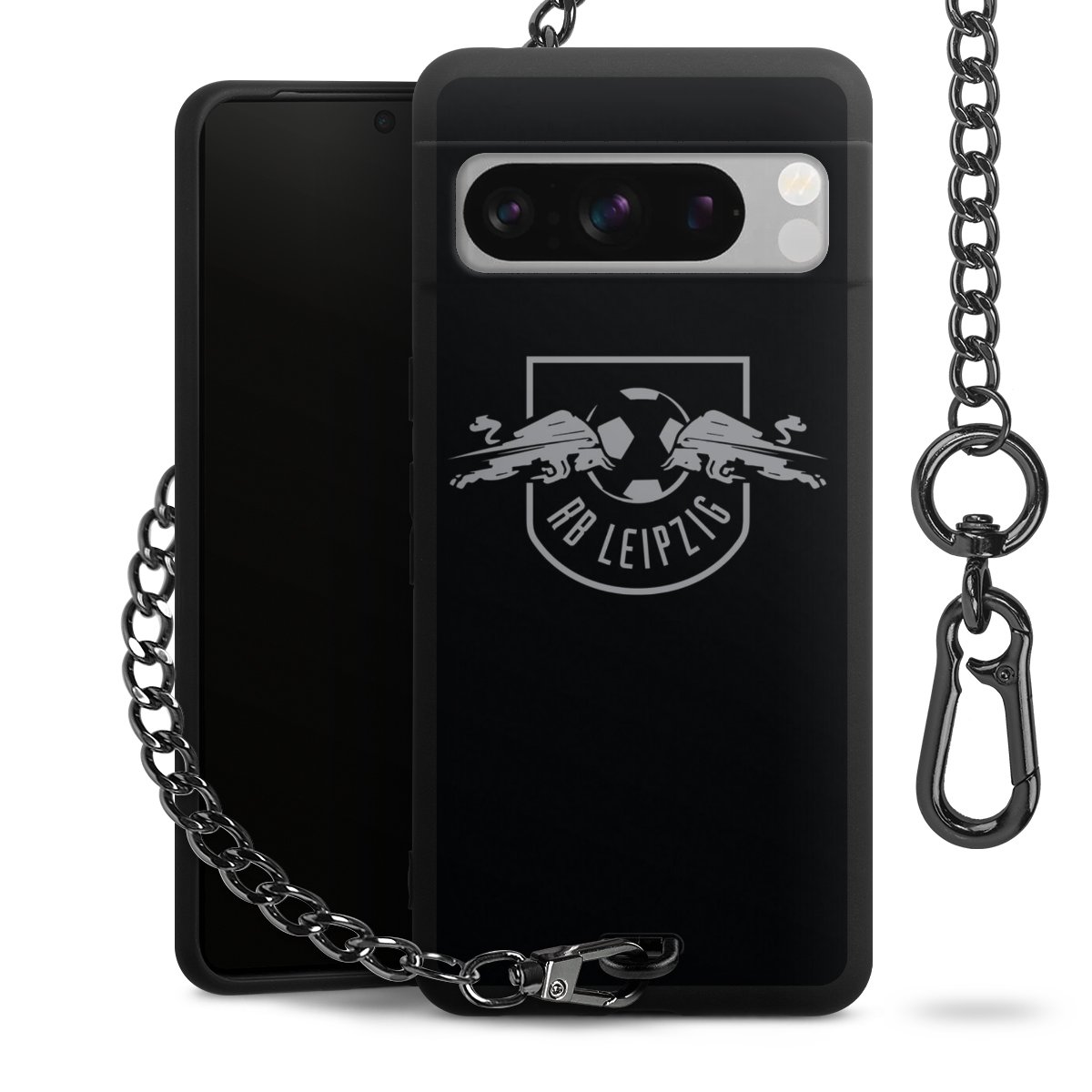 • Mattschwarze Handyhülle mit Metallkette