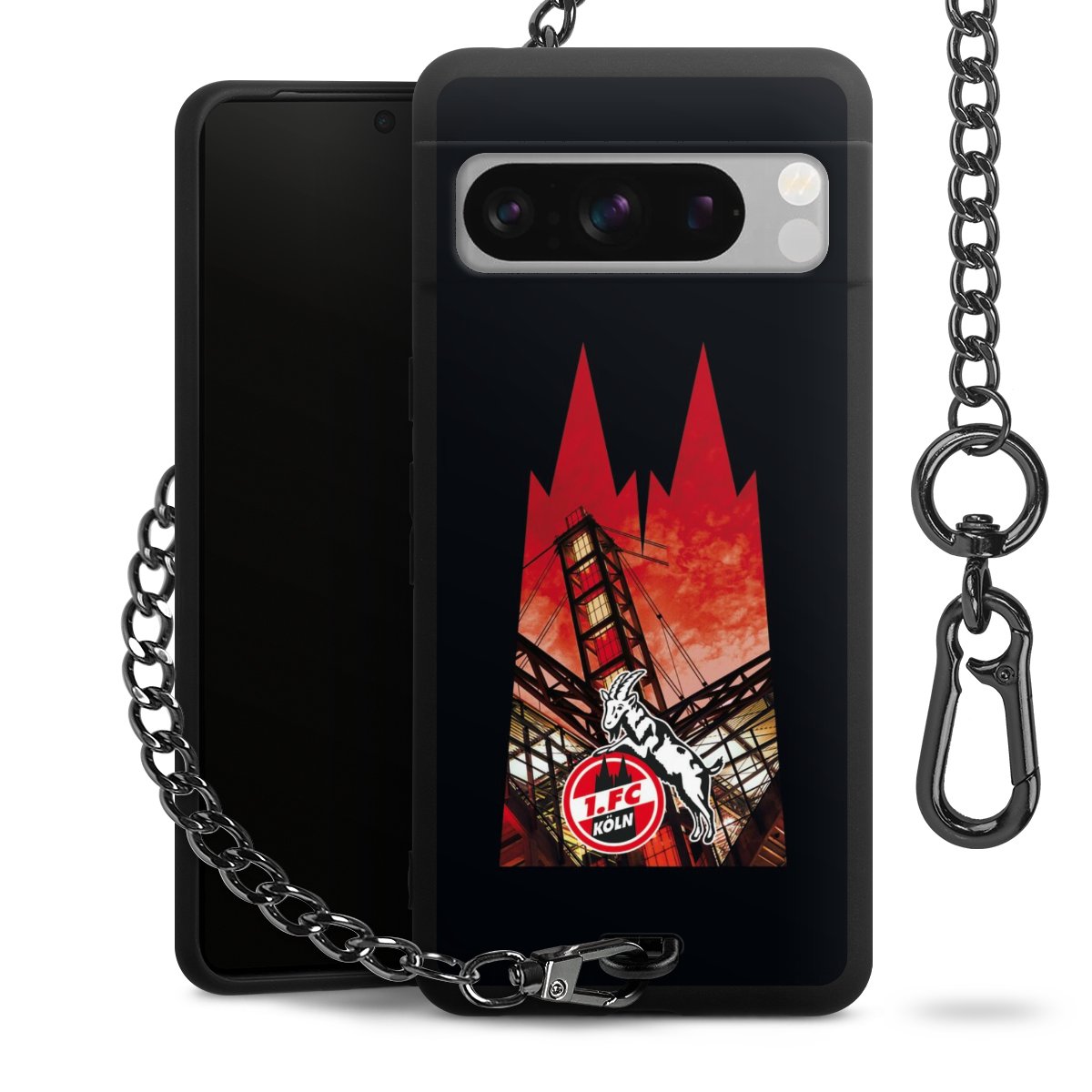 Die mattschwarze Silikon-Handyhülle besteht aus robustem TPU (thermoplastisches Polyurethan). Sie ist flexibel und schützt Dein Smartphone vor Stößen und Kratzern. Die Kette sowie der Karabinerhaken sind aus Metall in Gunmetal-Optik gefertigt. Für dieses Produkt kommen ausschließlich TÜV-geprüfte Materialien zum Einsatz.