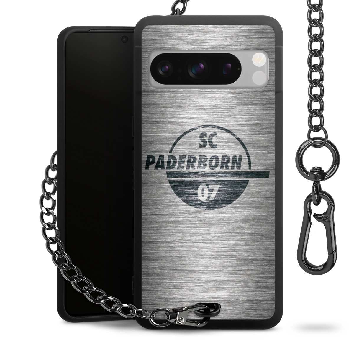 • Mattschwarze Handyhülle mit Metallkette