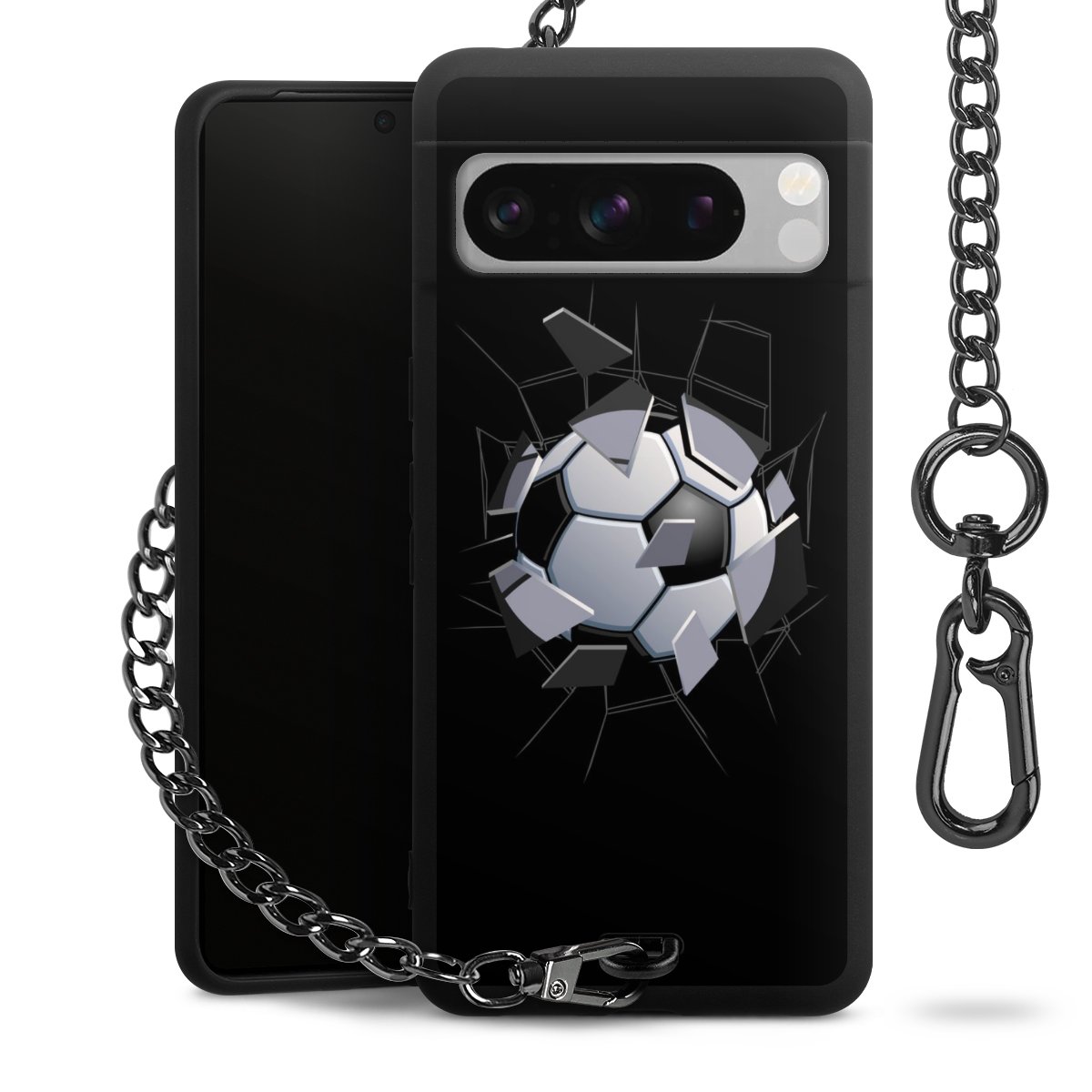 • Mattschwarze Handyhülle mit Metallkette