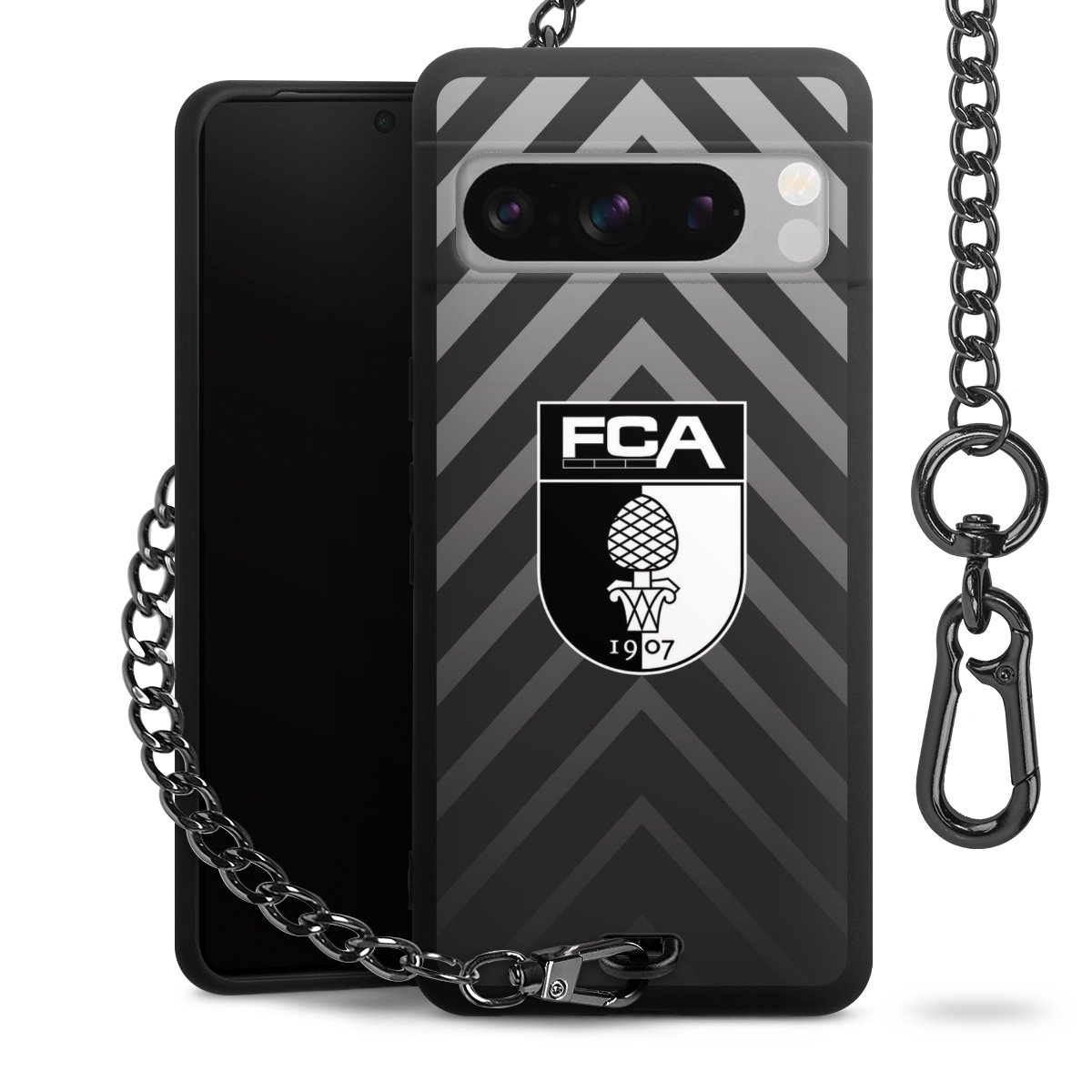 • Mattschwarze Handyhülle mit Metallkette