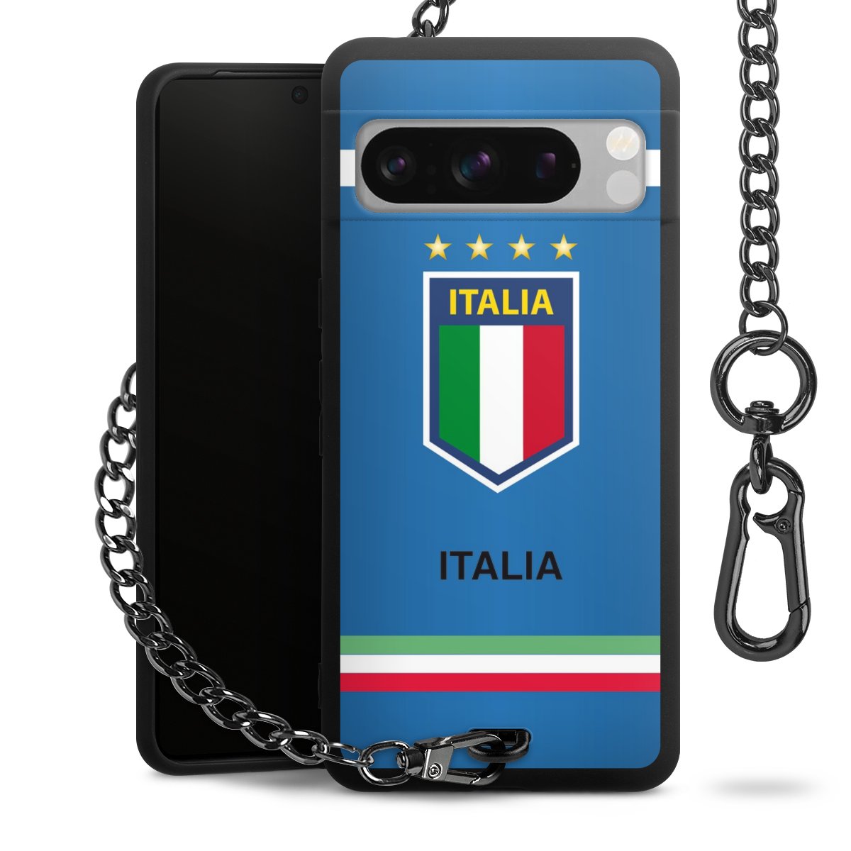 - Mattschwarze Handyhülle mit Metallkette