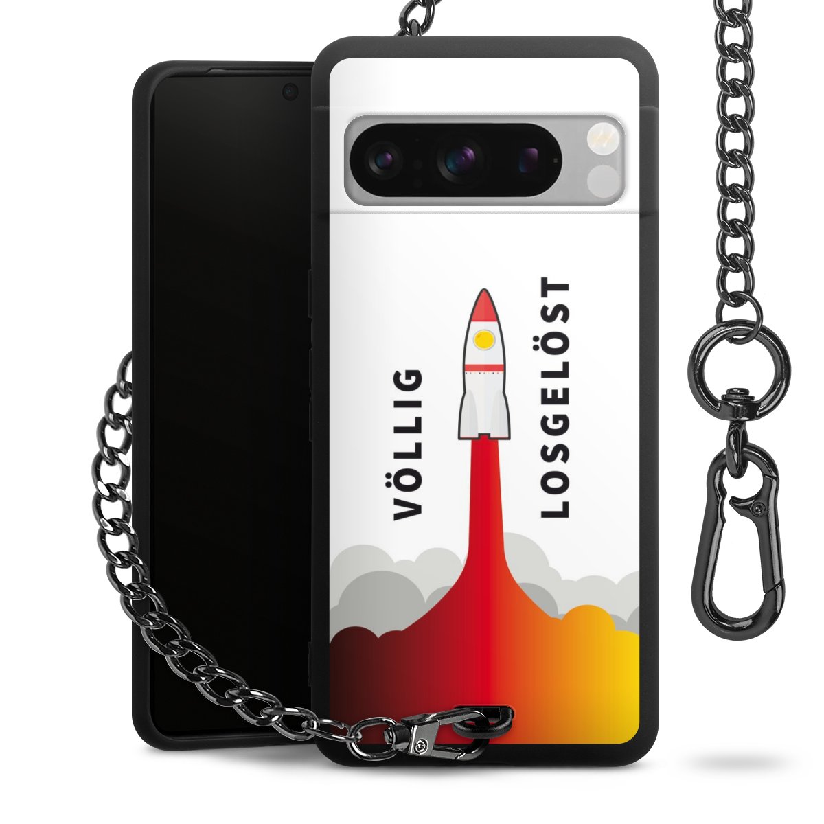 Die mattschwarze Silikon-Handyhülle besteht aus robustem TPU (thermoplastisches Polyurethan). Sie ist flexibel und schützt Dein Smartphone vor Stößen und Kratzern. Die Kette sowie der Karabinerhaken sind aus Metall in Gunmetal-Optik gefertigt. Für dieses Produkt kommen ausschließlich TÜV-geprüfte Materialien zum Einsatz.