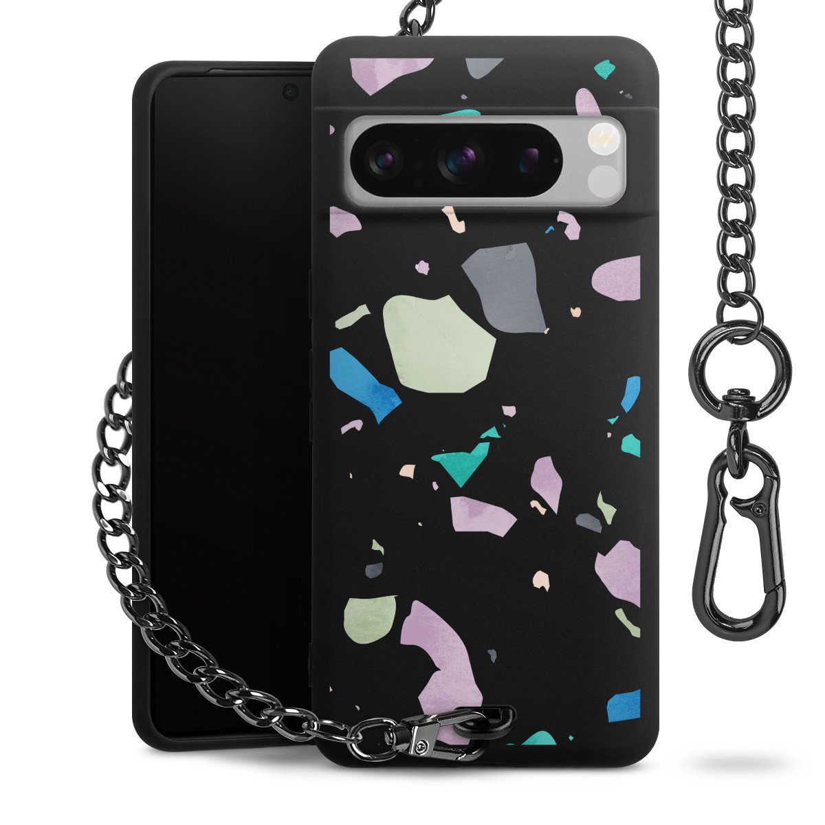 • Mattschwarze Handyhülle mit Metallkette