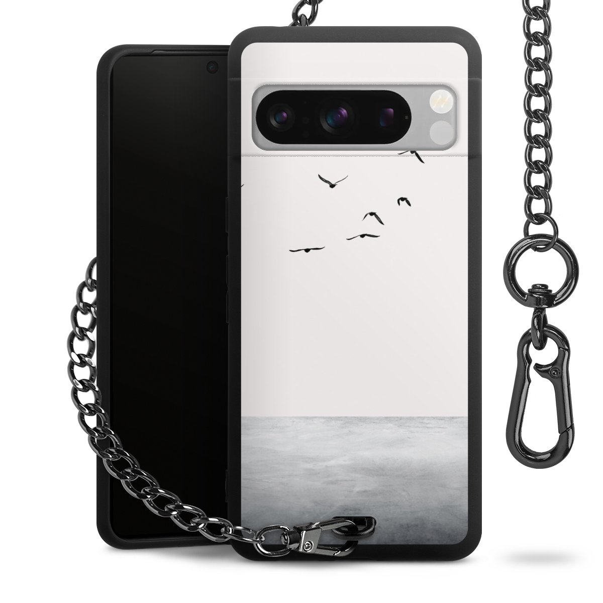 • Mattschwarze Handyhülle mit Metallkette